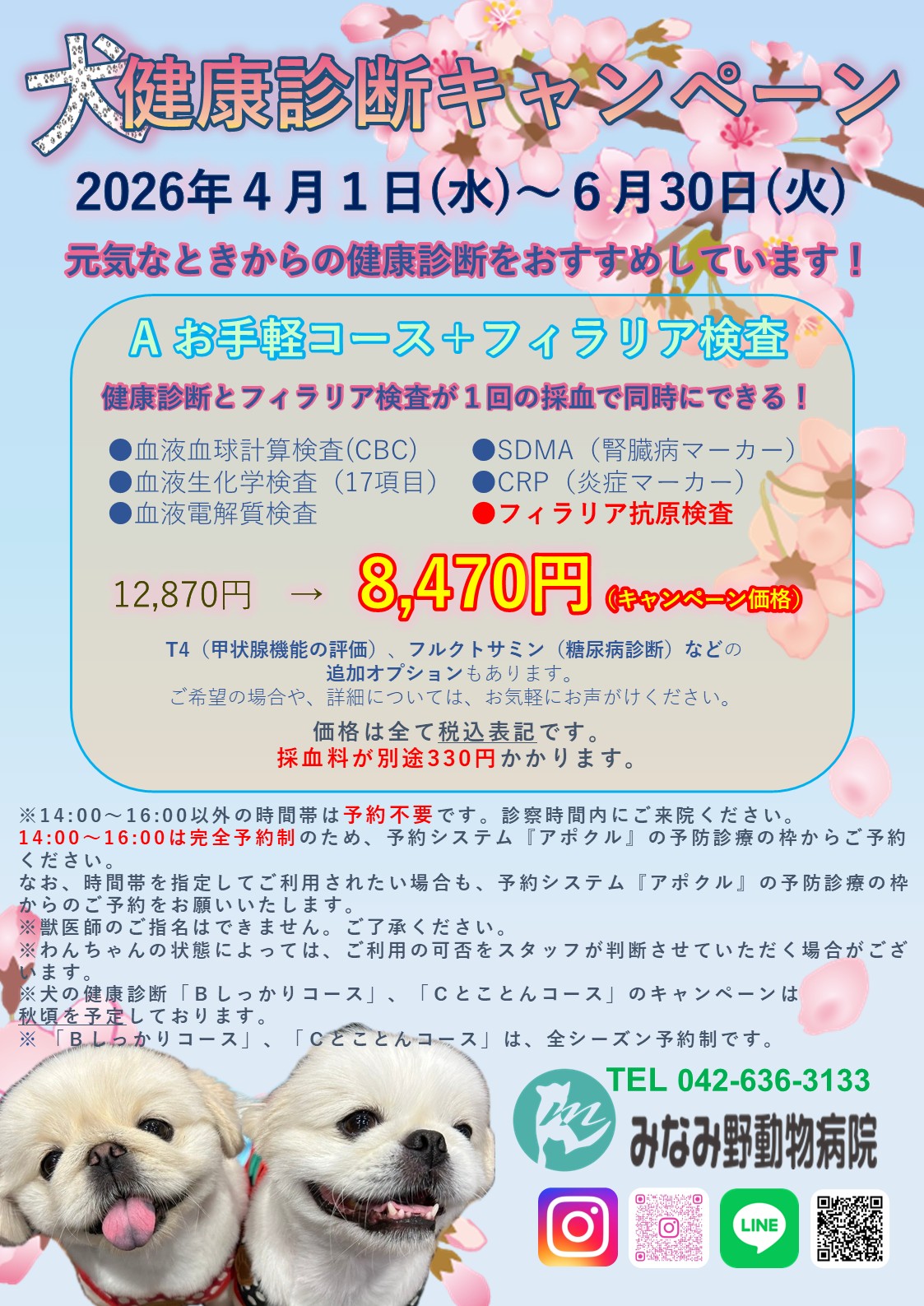 今年も犬の健康診断キャンペーンは春・秋の2回実施予定です!